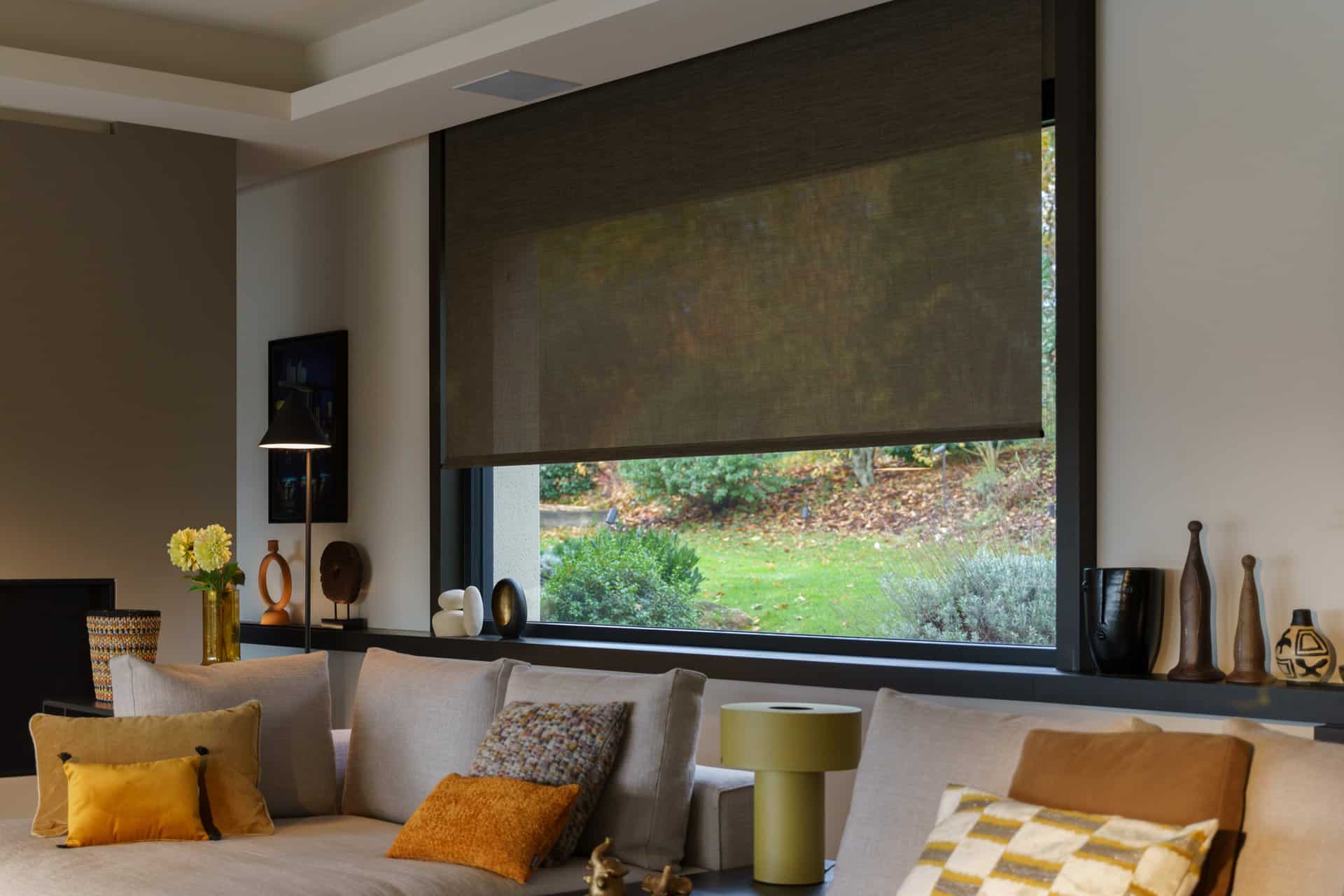 We manufacture large roller blinds for large windows and large views. We can cover up to 4.4 meters in one blind, this eliminates gaps that general blinds would have over a large spance. All roller blinds can be chain operated or motorised for your ease and safety.