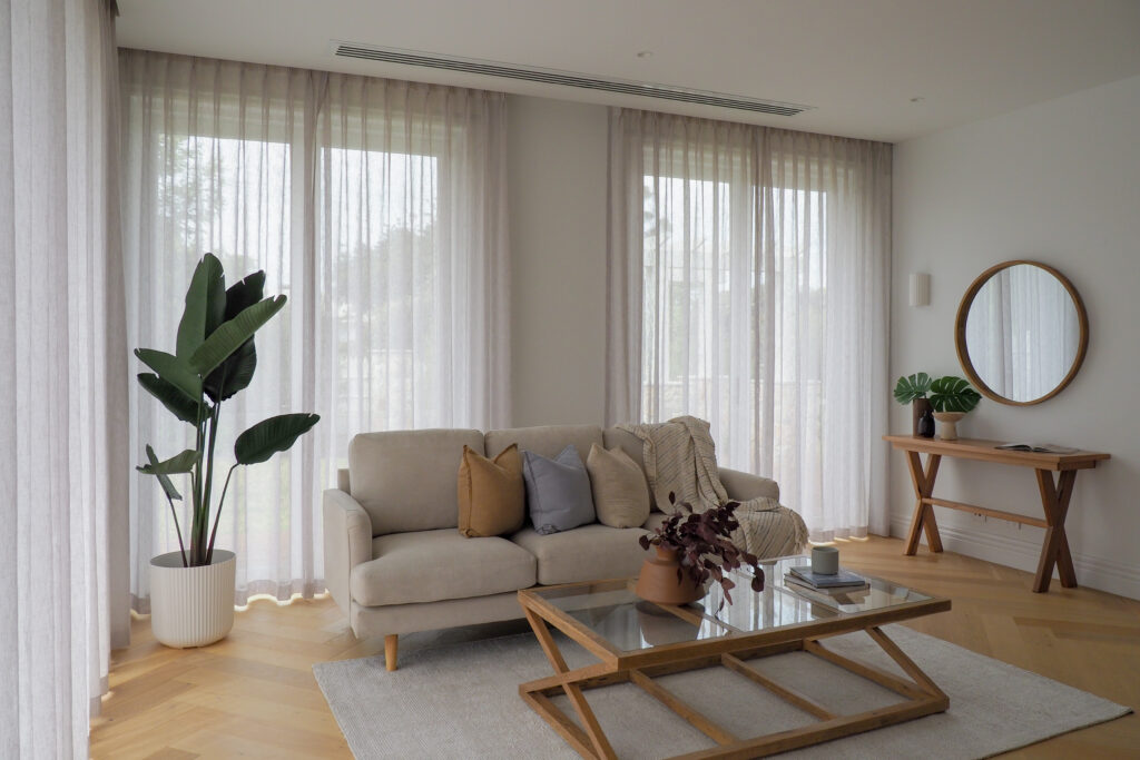 Sheer curtains allow soft daylight to filter through while reducing visibility from the street during the day. They suit open plan living areas and coastal interiors where you want light without glare.